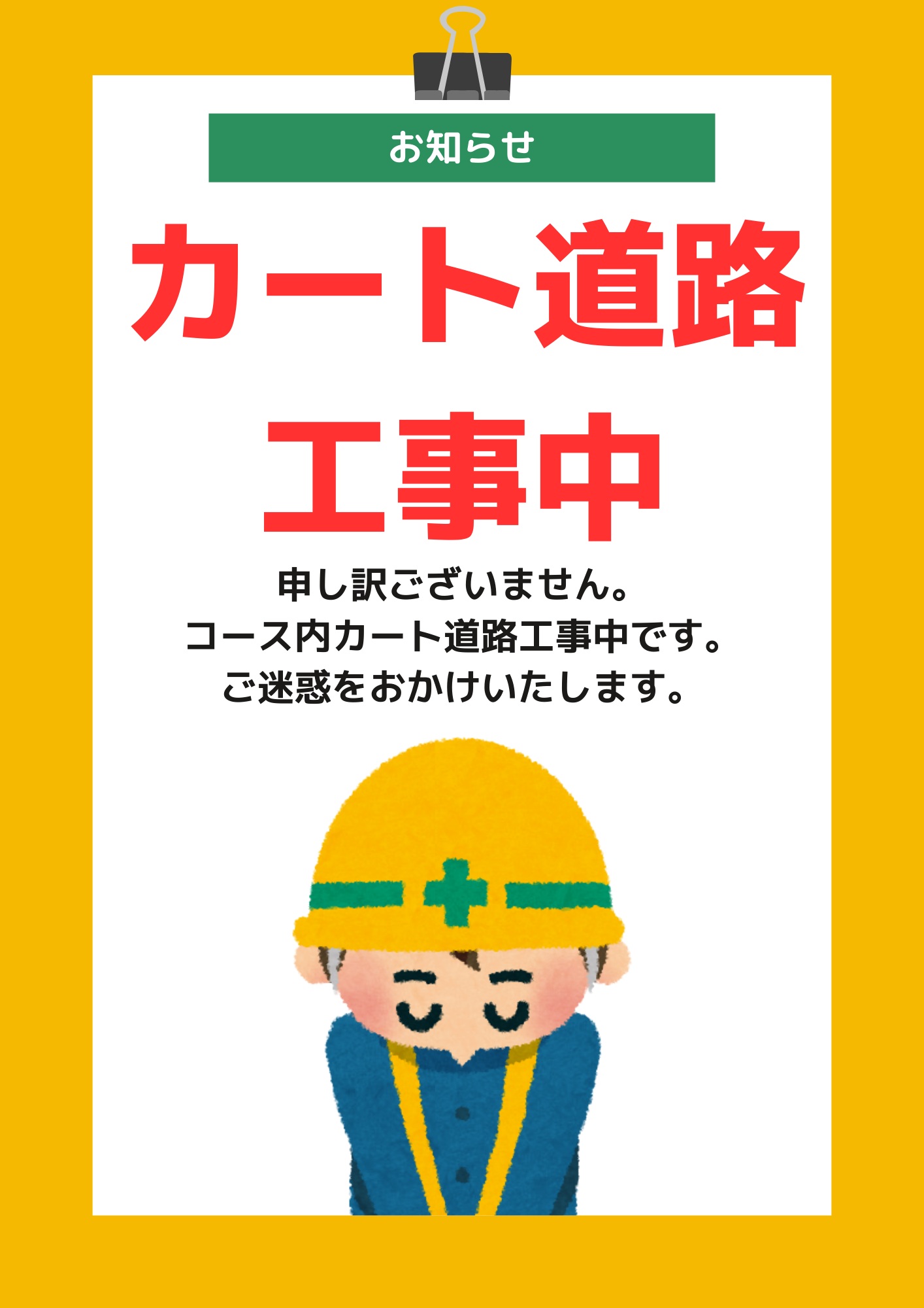 コース内カート道路全面補修工事のお知らせ